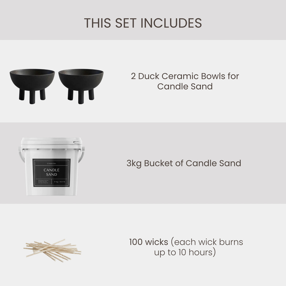A: Each bundle is unique. The contents are carefully curated and may vary — that’s what makes each one special. You’ll always receive a mix of our most-loved Candle Sand, designer bowls, and accessories.