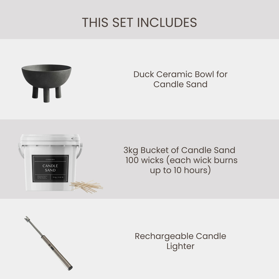 A: Each bundle is unique. The contents are carefully curated and may vary — that’s what makes each one special. You’ll always receive a mix of our most-loved Candle Sand, designer bowls, and accessories.